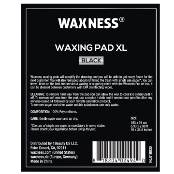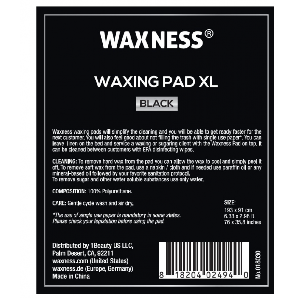 Waxness waxing pads will simplify the cleaning and you can get ready faster for the next customer. You will also feel good about not filling the trash with single-use paper*. You can leave linen on the bed and service a waxing or sugaring client with the Waxness Pad on top. It can be cleaned between customers with EPA disinfecting wipes.