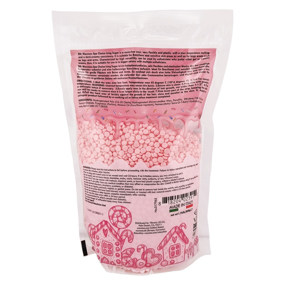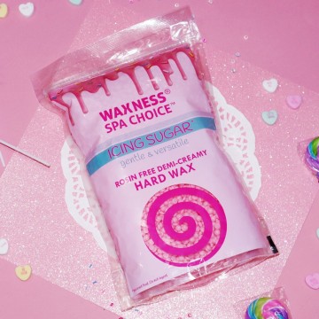 Waxness Spa Choice Icing Sugar is a rosin-free wax, very flexible and plastic, with a low-temperature melting and a demi- creamy consistency. It is suitable for Brazilians and sensitive skin areas as well as for large areas such as legs and arms. Characterized by very low adhesion to the skin it is specially formulated to be applied and removed in any direction. Scented with a delicious vanilla icing sugar aroma.