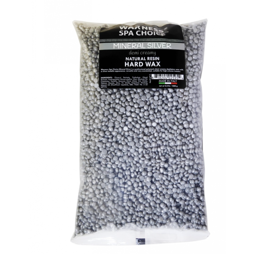 Waxness Spa Choice Mineral Silver is a professional polymeric demi creamy depilatory wax with a silver metallic appearance, versatile and very economical, suitable for high-volume waxers.