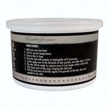 Men's hair is stronger but the skin can be very sensitive. This depilatory hard wax is specially created for men. Special components added to increase the adherence of wax will assure a clean waxing of coarse, thick man hair. Use applicator. No stripes removal. WARNING: Professional Use Only! Test on a small area before use. If rthe ash develops discontinue use. Read all the warnings and instructions on the product label before use. Do not heat above max temperature.