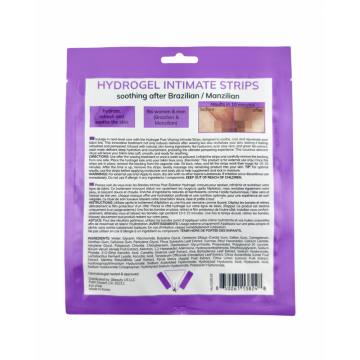 Directions: Use after the waxing treatment or once a week as pictured. Unfold the strips and carefully remove the backing from one side. Place the hydrogel side onto your bikini lines area. (Reminder: This product is for external use only.) Once the strips are in place, remove the backing from the opposite side. Sit back, relax, and let the strips work their magic for 10-15 minutes. After the time is up, rremove the strips. Gently massage any remaining product into your skin. TIP: For optimal results, use the strips before applying moisturizer and body oils to help supplement and lock in moisture.