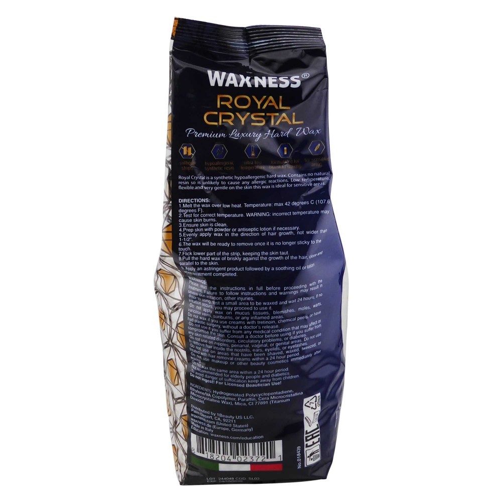 Description: Waxness Royal Crystal is a Premium Luxury Depilatory Hard Wax made from the highest quality hypoallergenic resin with our unique blend of ingredients that work to create a flexible, yet strong wax.