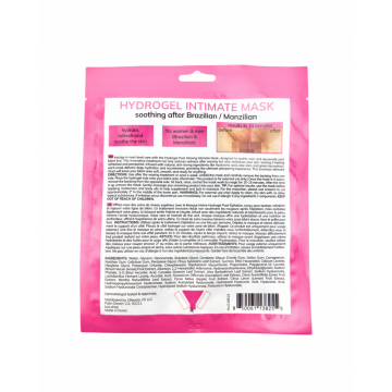 Directions Mask: Use after the waxing treatment or once a week. Unfold the mask and carefully remove the backing from one side. Place the hydrogel side onto your bikini area. (Reminder: This product is for external use only.) Once the mask is in place, remove the backing from the opposite side. Sit back, relax, and let the mask work its magic for 10-15 minutes. After the time is up, remove the mask. Gently massage any remaining product into your skin. TIP: For optimal results, use the mask before applying moisturizer and body oils to help supplement and lock in moisture. For the manzilian, please use scissors to cut approximately 2" in the middle of the lower part. Warnings: For external use only! Apply to clean, dry skin with no other topical substances. If irritation occurs discontinue use immediately. Do not use if allergic ti any ingredients / components. KEEP OUT OF REACH OF CHILDREN.