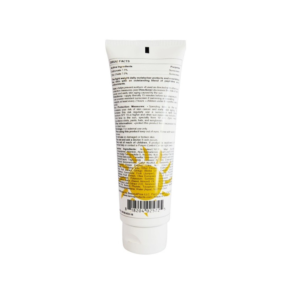 Ingredients: Acrylates/C10-30 Alkyl Acrylate Crosspolymer, Allantoin, Aloe Barbadensis (Aloe) Leaf) Extract, Alpha Acetyl Tetrapeptide-5, Ascorbic Acid, Ascorbyl Palmitate, Butyloctyl Salicylate, Camellia Sinensis (White tea) Leaf extract, Caprylic/Capric Triglyceride , Cetearyl Alcohol, Ceteraeth-20, Ceteraryl Isononanoate, Cetyl Alcohol, Chamomilla Recutita (Matricaria) Flower Extract, Citric Acid. Coco-Caprylate/Caprate, Emulsifying wax, Ethyl Ferulate, Euterpe Oleracea (Acai) fruit extract, Ginkgo Biloba Leaf Extract, Glycerin, Juniperus Communis Fruit (Juniper), Malpighia Punicifolia (Acerola) Fruit Extract, Olea Europaea (Olive) Fruit Extract, Phenoxyethanol, Potassium Sorbate, Propanediol, Prunus Amygdalus Dulcis (Sweet Almond) Oil, Rosmarinus officinalis (Rosemary) Leaf Extract CO2, Simmondsia Chinensis (Jojoba) Seed Oil, Sodium Phytate, Tocopherol, Tocopheryl Acetate, Triethoxycaprylylsilane, Water (Aqua), Xanthan Gum.