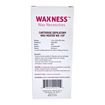 Ideal for use with all Wax Necessities soft wax cartridges, the WX-1C heater offers a simple and reliable service. On the exterior the heater is molded in a highly resistant APS thermoplastic plastic resin. and aluminium is used for the quality inner construction.